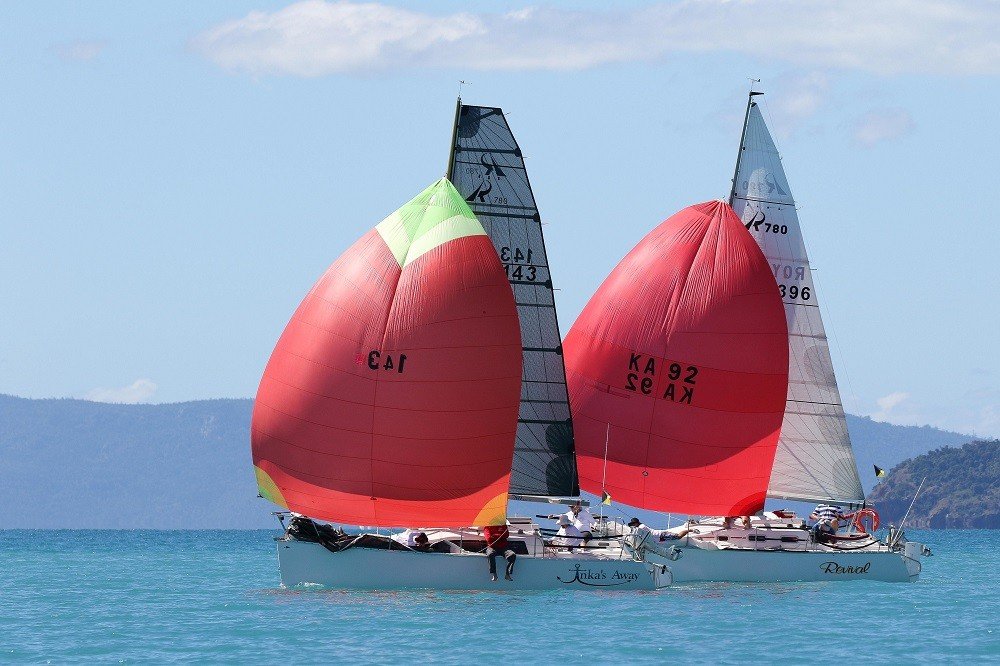 Michel Van Der Zwaard’s Back in Black, here for a second year running, has taken a slim four-point lead over newcomer to the Whitsunday Sailing Club (WSC) hosted event, ORMA 60 (Dale Mitchell), who represents the host club.