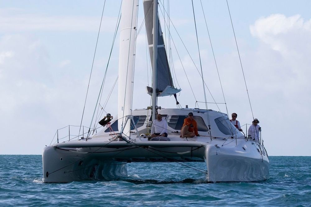 Marc Girard continues to cut a swathe through the Multihull Passage Division 2 with Storm Bay, a Chamberlin Cruising 40 cat. Third place today has cemented his six point lead.