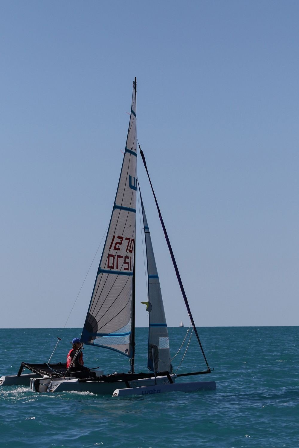 A super competitive father and son are sailing in the Weta trimaran class at Airlie Beach Race Week in the Whitsundays this week and the results have sea sawed between the pair from Lake Cootharaba Sailing Club in Boreen, Queensland.